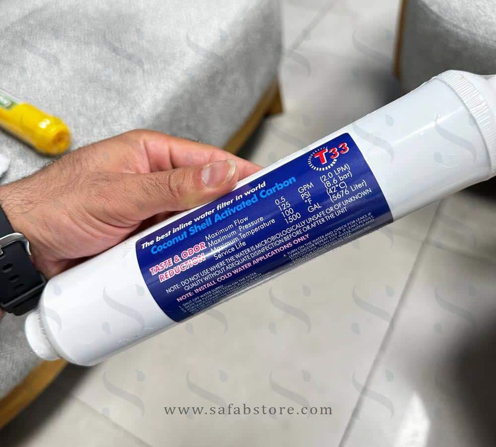 این فیلتر از کربن فعال تولید میشود که سطحی متخلخل دارد و به شکل خطی در محل عبور آب قرار میگیرد. مواد شیمیایی و آلایندههای موجود در آب که از مراحل قبلی تصفیه باقی ماندهاند، توسط این فیلتر حذف و پاکسازی میشوند. همچنین پس از این فیلتر، طعم و بوی نامطبوع آب بهبود یافته و رنگ آن شفافتر و زلالتر میشود.
