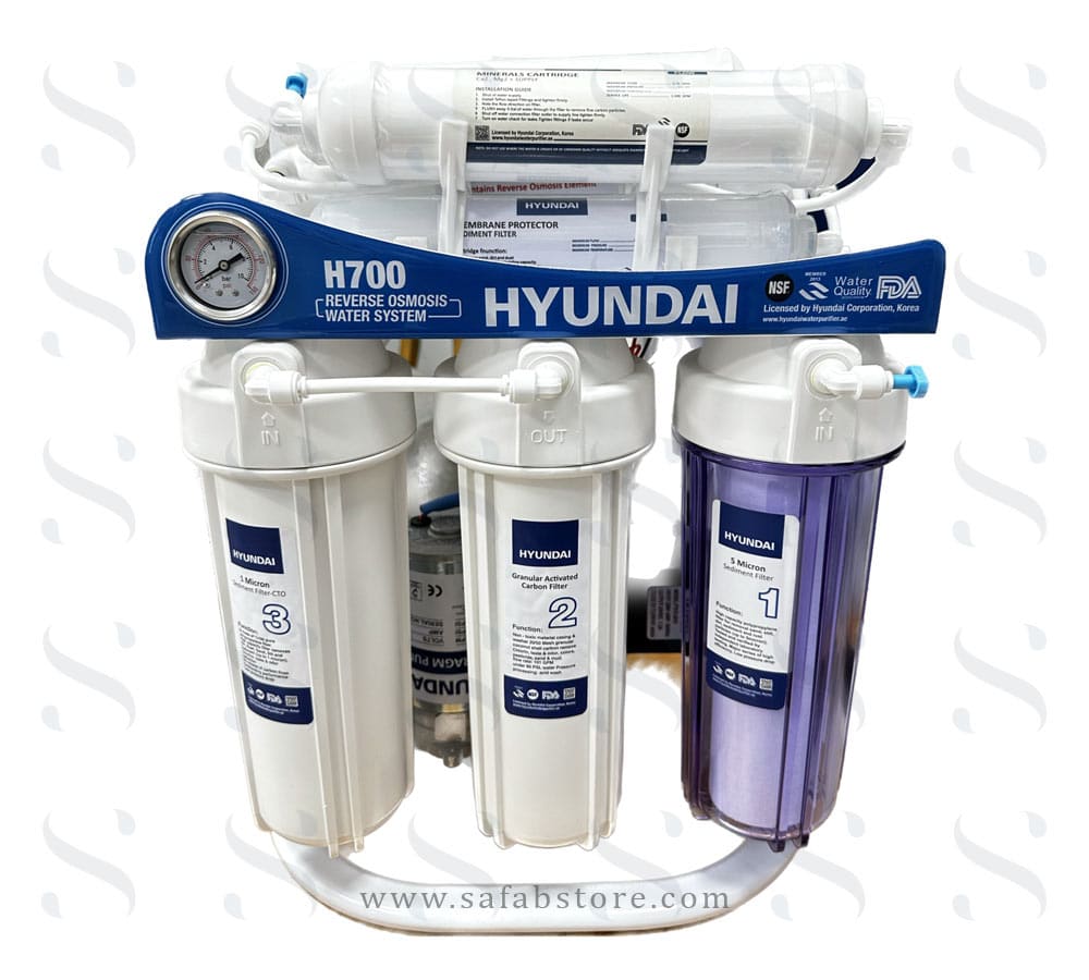 دستگاه هیوندای H700 یکی از دستگاههای پرطرفدار و باکیفیت تصفیه آب خانگی محسوب میشود. برای ساخت این دستگاه از فناوری پیشرفته اسمز معکوس و سیستم فیلتراسیون هفت مرحلهای استفاده شده است. به نحوی که با عملکرد این دستگاه، انواع آلایندهها و ناخالصیهای موجود در آب به راحتی حذف میشوند. در ادامه مطالبی را به منظور آشنایی بیشتر با این دستگاه و مراحل تصفیه آب آن بیان کردهایم.