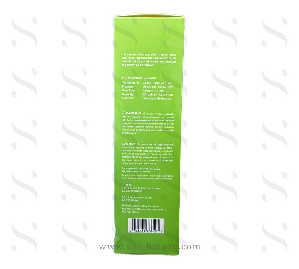 این فیلتر تمام ناخالصی های آب، رسوبات، موادشیمیایی مضر، سرب، جیوه و… را تصفیه می کند و طعم و بوی نامطبوع آب را از بین می برد. این فیلتر همچنین طعم و بوی کلر را که می تواند بسیار آزارهنده باشد و شما را از لذت نوشیدن آب بدون طعم و بو محروم کند، کاملا از بین می برد. با نصب فیلتر داخلی اورجینال و تعویض به موقع آن، هم آب بی رنگ و باکیفیت تری خواهید داشت و هم یخچال شما، یخ های بی رنگ و باکیفیت تری را تولید خواهد کرد.