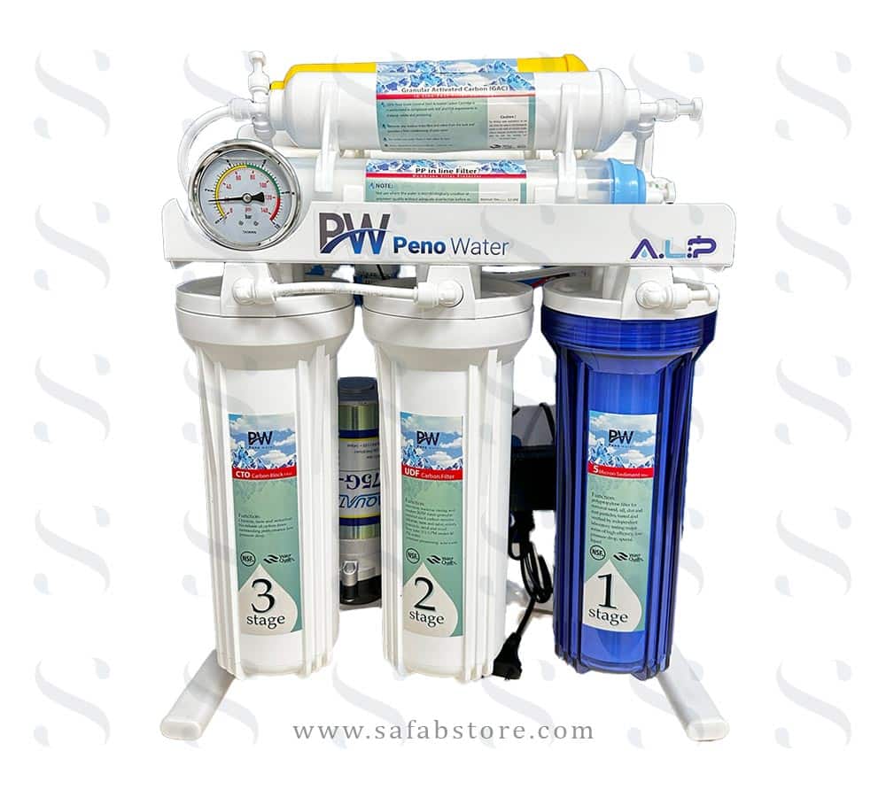 دستگاه تصفیه آب ۷ مرحله ای پنو واتر آلپ یک پکیج کامل سلامتی محسوب می شود. این دستگاه علاوه بر ۵ مرحله تصفیه اصلی که سایر دستگاه ها دارا هستند، دارای ۲مرحله اضافه در تصفیه آب است که باعث می شود آب حاصل از آن به مراتب سالم تر و قابل اطمینان باشد. این دستگاه دارای قطعات باکیفیت و بسیار بادوام وارداتی می باشد که در داخل کشور مونتاژ شده و کاملا مناسب آب لوله کشی ایران می باشد.