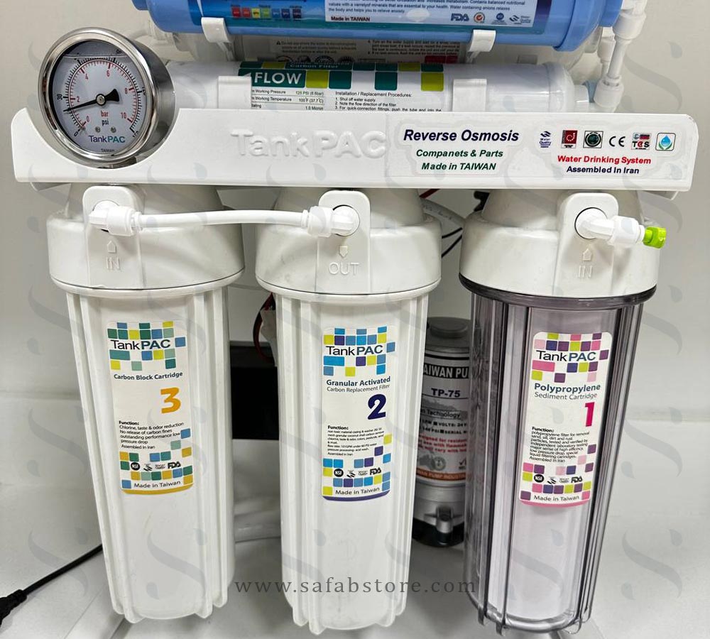 دستگاه تصفیه آب تانک پک، سیستم تصفیه آب خانگی است که بر اساس فناوری پیشرفته اسمز معکوس و سیستم فیلترسیون هفت مرحلهای طراحی شده است. آب تصفیهشده توسط این دستگاه در یک مخزن با ظرفیت 5 گالن ذخیره میشود تا کاربر در هر زمان که نیاز به آب داشت از آن استفاده کند. این دستگاه ساخت کشور تایوان است که در ادامه به بررسی ویژگیها، مزایا و سیستم فیلتراسیون هفت مرحلهای آن پرداختهایم.